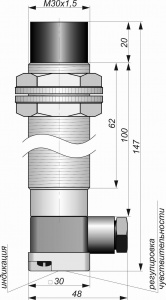 Емкостной датчик СКБ Индукция E03-NC-AC-TRB30(Текаформ, НКУ, Lкаб=2м, без рег.Sn)